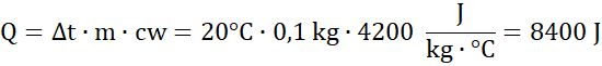 Aby obliczyć wartość ciepła, jakie pobrała woda, musimy pomnożyć jej masę, różnicę temperatur i ciepło właściwe.