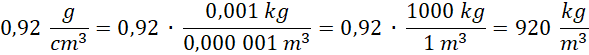 W tym zadaniu musisz przeliczyć wielkość podaną w gramach na centymetr sześcienny na kilogramy na metr sześcienny.