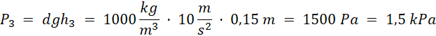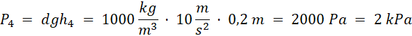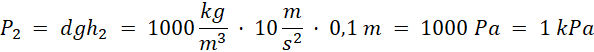 Oblicz ciśnienia na danych poziomach, gdy tłok nie działa, ciśnienie w tym przypadku będzie równe ciśnieniu hydrostatycznemu (gęstość wody