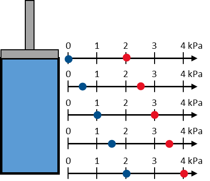 Oblicz ciśnienie, gdy tłok wywiera ciśnienie 2 kPa. W tym przypadku zgodnie z prawem Paskala ciśnienie wywierane przez ciecz na danym poziomie będzie sumą ciśnień hydrostatycznego i wywieranego przez tłok. Ciśnienia hydrostatyczne policzyłeś już wcześniej, musisz więc tylko dodać ciśnienie wytwarzanej przez tłok: