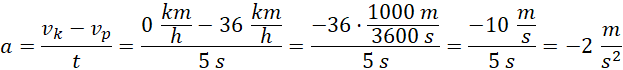 Opóźnienie oblicza się w ten sam sposób co przyspieszenie, lecz wówczas wynik jest ujemny: ujemne przyspieszenie to inaczej opóźnienie. Zatem dla wyniku przyspieszenia a=—2