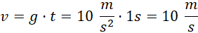 Zapisujemy wzór na wysokość pokonaną w spadku swobodnym. Z tego wzoru obliczamy czas. Na koniec podstawiamy do wzoru opisującego prędkość w ruchu jednostajnie przyspieszonym, gdzie przyspieszenie jest grawitacyjne.