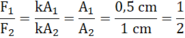 Korzystamy ze wzoru na siłę w ruchu drgającym. Maksymalna siła występuje, gdy wychylenie jest maksymalne, czyli równe amplitudzie. Zestawiamy ze sobą dwie siły i obliczamy ich stosunek.