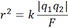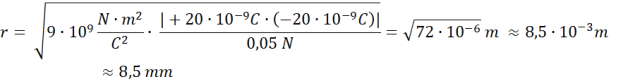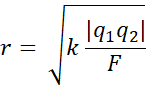 Przekształć wzór na siłę elektrostatyczną i otrzymujemy z niego zależność na odległość między ładunkami.