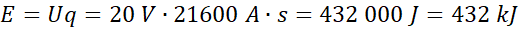 W tym zadaniu oblicz energię zgromadzoną w baterii, jeśli wiadomo, że ma ona pojemność 6000 mAh, a jej napięcie wynosi 20 V.
