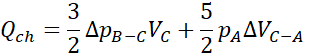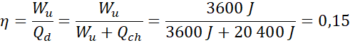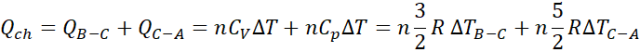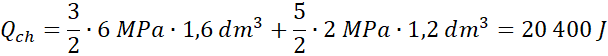 Pracę użyteczną obliczamy korzystając z pola w środku wykresu. Ciepło dostarczone jest sumą pracy użytecznej i ciepła oddanego do chłodnicy. Ciepło oddane do chłodnicy obliczamy jako sumę ciepeł oddanych w czasie przemian B-C i C-A. Sprawność silnika jest stosunkiem pracy użytecznej do ciepła dostarczonego.