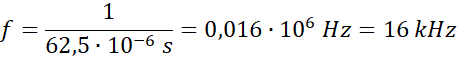 Częstotliwość jest odwrotnością okresu. W tabelach sprawdzamy, czy uzyskana częstotliwość leży w zakresie słyszalności.