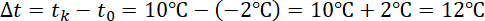 W fizyce symbolem ∆ (grecka litera delta) oznacza się różnicę między wartością końcową i początkową pewnej wielkości fizycznej. W tym zadaniu wartością końcową jest temperatura mierzona w południe, zaś wartością początkową jest temperatura mierzona rano. Musisz zatem odjąć od wartości wartość .