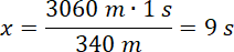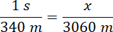 Podczas ruchu fali dźwiękowej, czas jest wprost proporcjonalny do przebytej drogi. Wystarczy zatem ułożyć stosunek.
