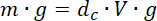 By ciało pływało, siła ciężkości musi zostać zrównoważona przez siłę wyporu. Przyrównując je do siebie: