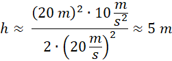 Oblicz wysokość, z jakiej trzeba wystrzelić kamień poziomo z prędkością , aby upadł on na ziemię w odległości 20 m. Pomijamy siły oporu.