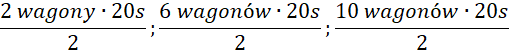 2 wagony ∙ 20 s; 6 wagonów ∙ 20 s; 10 wagonów ∙ 20 s