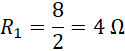 Odbiornik I wynosi 4 Ω i jest on dwa razy mniejszy od oporu odbiornika II, który jest równy 8 Ω.