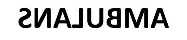 Wyraz AMBULANS jest zapisany w powyższy sposób na masce karetki, aby był on widoczny i możliwy do przeczytania dla kierowców, widzących go w lusterkach auta.
