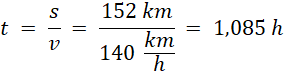 Należy obliczyć w jakim czasie pokonamy odległość 152 km (odcinek Toruń–Gdańsk), jadąc z maksymalną dopuszczalną prędkością .