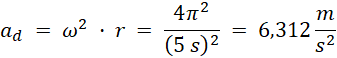 Ile wynosi przyspieszenie dośrodkowe oraz siła dośrodkowa działająca na ciało o masie 60 kg znajdujące się w odległości 4 m od osi obrotu?