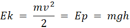 Początkowa energia kinetyczna jest równa energii potencjalnej na maksymalnej wysokości: