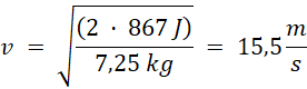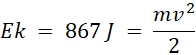 Łączna energia kuli wynosi 867 J, podczas uderzenia w ziemię całość tej energii stanowi energia kinetyczna: