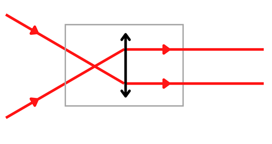 c) Pierwszym rozwiązaniem nasuwającym się na myśl jest soczewka rozpraszająca – wykorzystująca ognisko pozorne. Istnieje jednak rozwiązanie tego problemu z użyciem soczewki skupiającej: