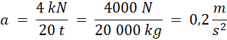 Oblicz jakie przyspieszenie zyska wagon korzystając z drugiej zasady dynamiki: