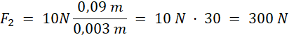 10 N · 9 cm = F2 · 3 mm