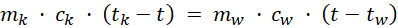 gdzie: mk − masa metalowej kulki; mw − masa wody; ck − ciepło właściwe metalu; cw − ciepło właściwe wody; tk − temperatura początkowa kulki; tw − temperatura początkowa wody; t − temperatura końcowa wody i kulki;