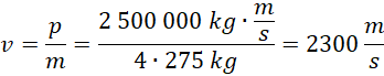 Zgodnie z zasadą zachowania pędu taka sama jest wartość pędu gazów wylotowych, na tej podstawie możemy wyznaczyć ich prędkość: