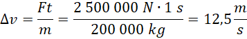 Obliczamy wzrost prędkości rakiety w czasie 1 sekundy:
