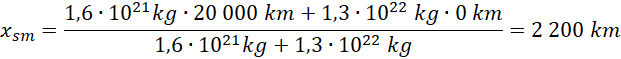 Aby obliczyć środek masy układu, korzystamy ze wzoru , przyjmujemy również, że środek układu współrzędnych znajduje się w Plutonie.