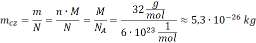 Oblicz masę jednej cząsteczki tlenu i liczbę cząsteczek zawartych w zbiorniku wiedząc, że znajduje się w nim mola tlenu, którego masa molowa .