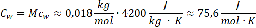 Oblicz ciepło molowe wody, wiedząc, że jej ciepło właściwe wynosi ok. .