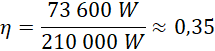 Zapisujemy wzór na sprawność silnika korzystając ze stosunku mocy użytkowej do mocy dostarczonej do silnika. Obliczamy poszczególne moce i podstawiamy dane liczbowe do głównego wzoru.