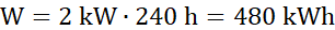 , gdzie P to moc w watach, W to praca w dżulach, t – czas w sekundach. By wyrazić pracę w kilowatogodzinach, to możesz pomnożyć moc w kilowatach przez czas w godzinach.