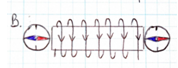 Igły kompasów będą ustawione do siebie wzdłuż linii pola magnetycznego (które są równoległe) tak, że po obu stronach rdzenia igły będą do siebie zwrócone przeciwnymi biegunami.