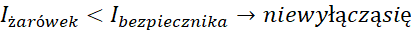 Przekreśl żelazko, czajnik elektryczny, telewizor i bezpiecznik przy tych urządzeniach.