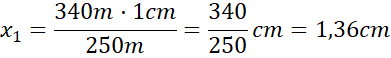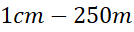 1 cm na mapie odpowiada 25 000 cm w rzeczywistości, czyli 250 m.