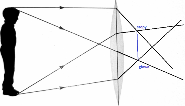 W tym zadaniu dokończ rysunek, zaznaczając bieg promieni.