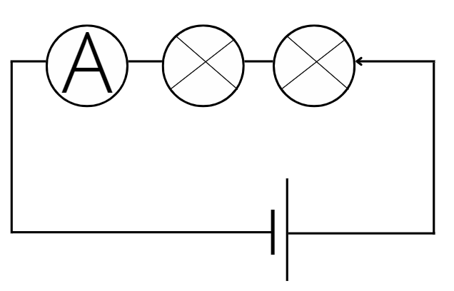 Obwód będzie się składać z dwóch żarówek i amperomierza. Pamiętaj, że prąd umownie płynie od plusa do minusa.