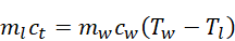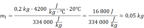 Zgodnie z bilansem cieplnym, ciepło oddane przez wodę podczas jej ochładzania jest równe ciepłu potrzebnemu do stopienia lodu. Maksymalna ilość lodu, jaka może ulec stopieniu będzie możliwa, gdy woda ochłodzi się do temperatury 0°C.