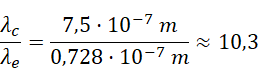 Długość fali elektronu jest kilkukrotnie razy mniejsza od długości fal światła widzialnego.