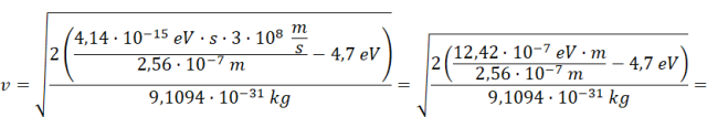 Wyznacz prędkość fotoelektronów, które zostały wybite z elektrody wykonanej ze srebra, jeśli padało na nią promieniowanie ultrafioletowe o długości fali 256 nm.