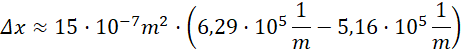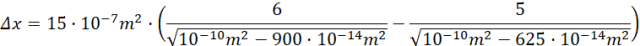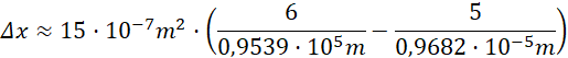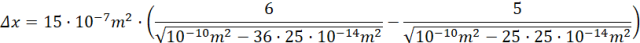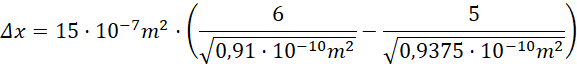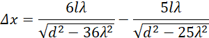 W zadaniu trzeba było obliczyć odległość między prążkami piątego i szóstego rzędu, więc należało wyznaczyć