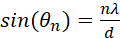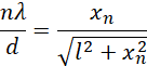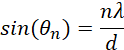 Zależność pomiędzy kątem ugięcia a numerem prążka i długością fali jest dana wzorem: