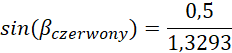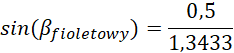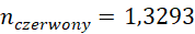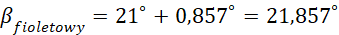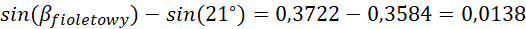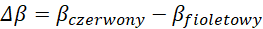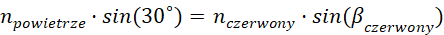 Korzystając z prawa Snelliusa, możesz obliczyć kąt załamania dla obu kolorów światła. Współczynnik załamania dla powietrza wynosi około