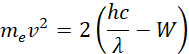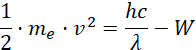 Energia kinetyczna wybitego elektronu ma postać: