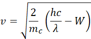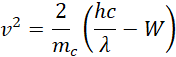 Maksymalna prędkość elektronu wybitego z rubidu zapisujesz: