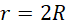 Kule stykają się ze sobą i mają jednakowe promienie, więc odległość między ich środkami jest równa podwojonemu promieniowi.