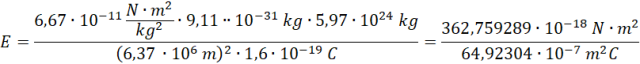 Wartość siły grawitacji Ziemi oddziałująca na elektron, musi być równa sile elektrostatycznej działającej na elektron. Wtedy, zgodnie z I zasadą dynamiki Newtona, siły równoważyłyby się.