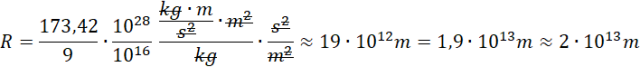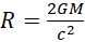 , gdzie R – promień, G – stała grawitacji, M – masa czarnej dziury, c – prędkość światła w próżni.