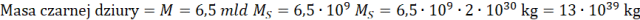 Zapisz masę czarnej dziury w kilogramach.